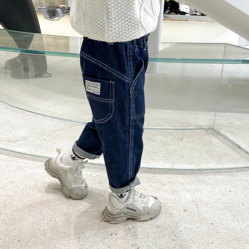 韓版秋季復古百搭寬松高腰做舊磨白直筒牛仔